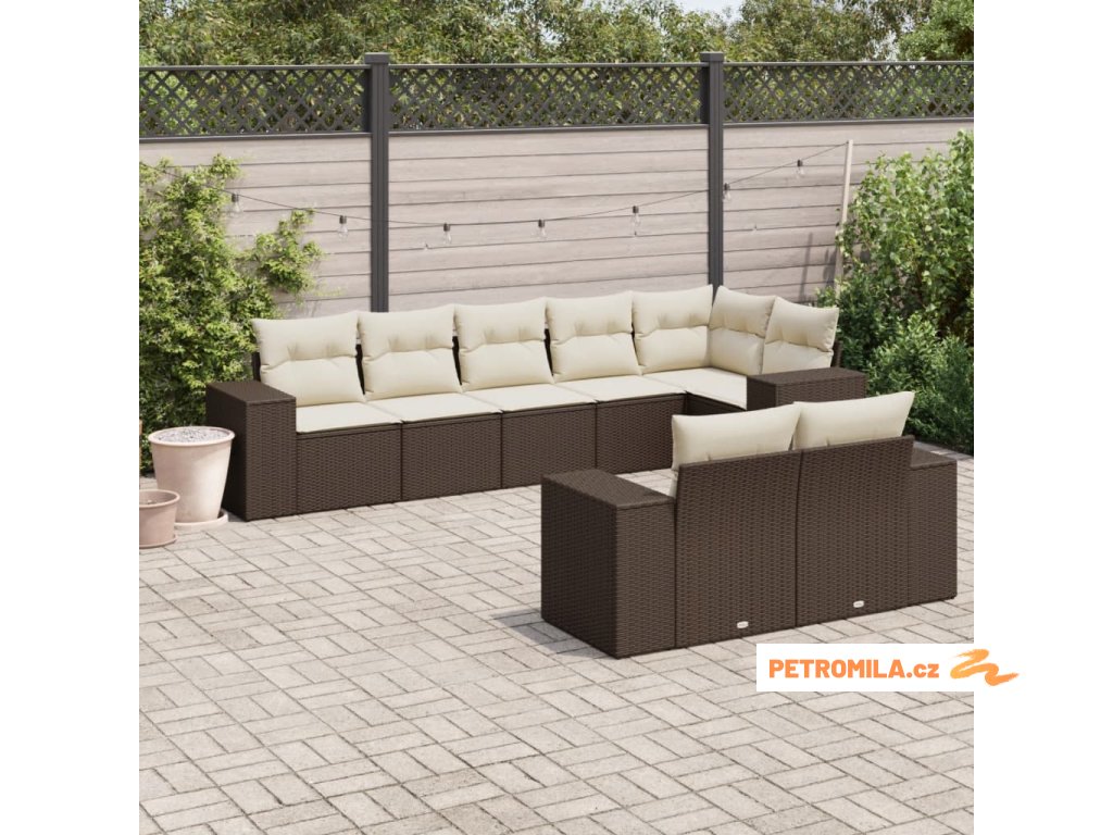 8dílná zahradní sedací souprava s poduškami hnědá polyratan