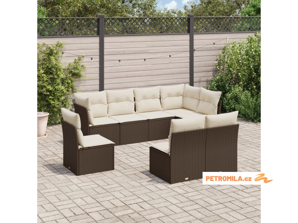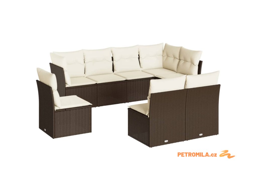 8dílná zahradní sedací souprava s poduškami hnědá polyratan