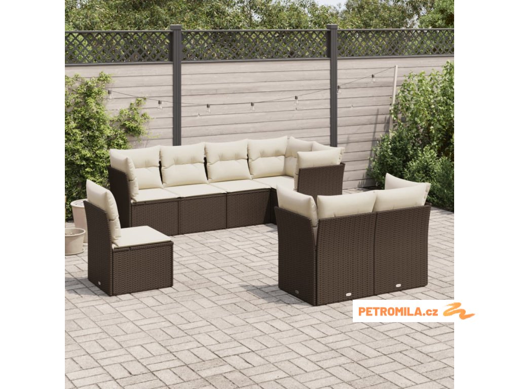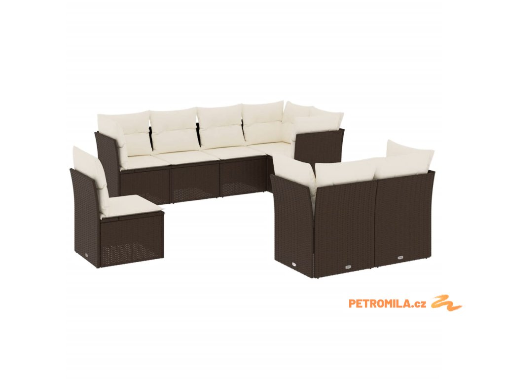 8dílná zahradní sedací souprava s poduškami hnědá polyratan