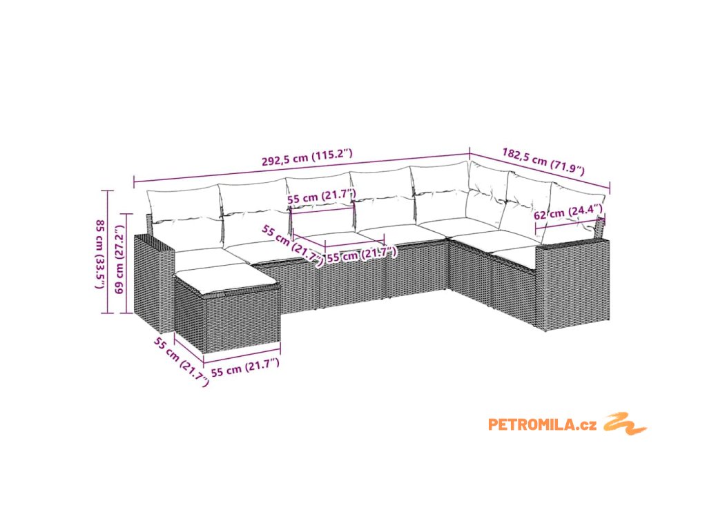 Sada zahradních pohovek s polštářem 8 pcs Béžová Poly ratan