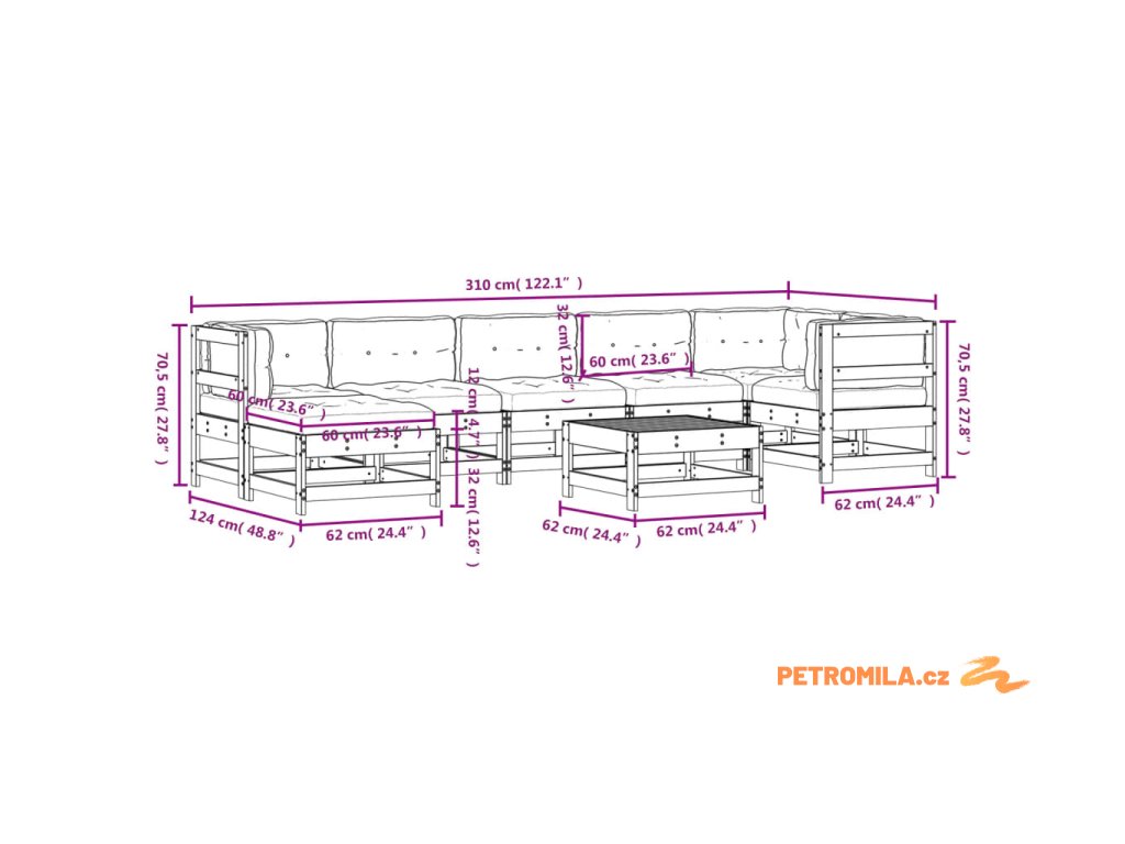 7dílná zahradní sedací souprava s poduškami masivní douglaska
