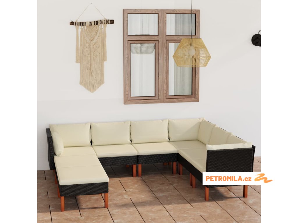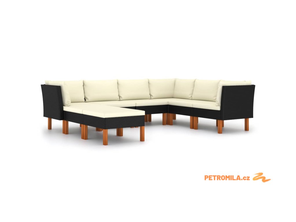 8dílná zahradní sedací souprava s poduškami polyratan černá