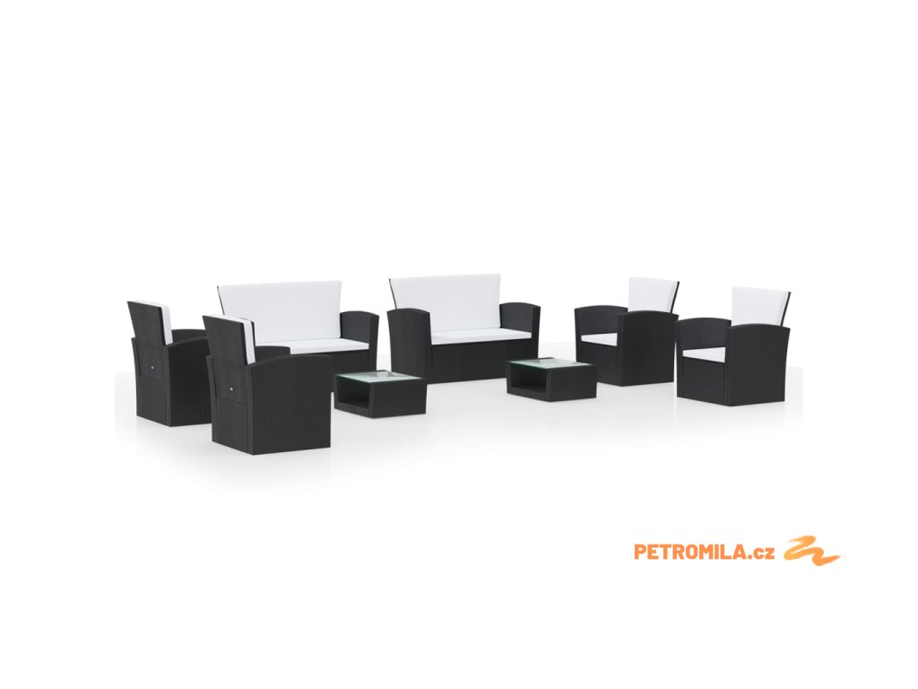 8dílná zahradní sedací souprava s poduškami polyratan černá