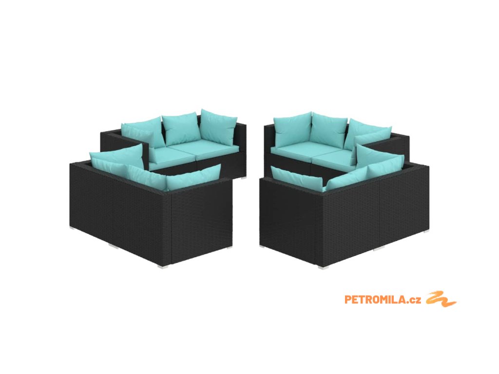 8dílná zahradní sedací souprava s poduškami polyratan černá