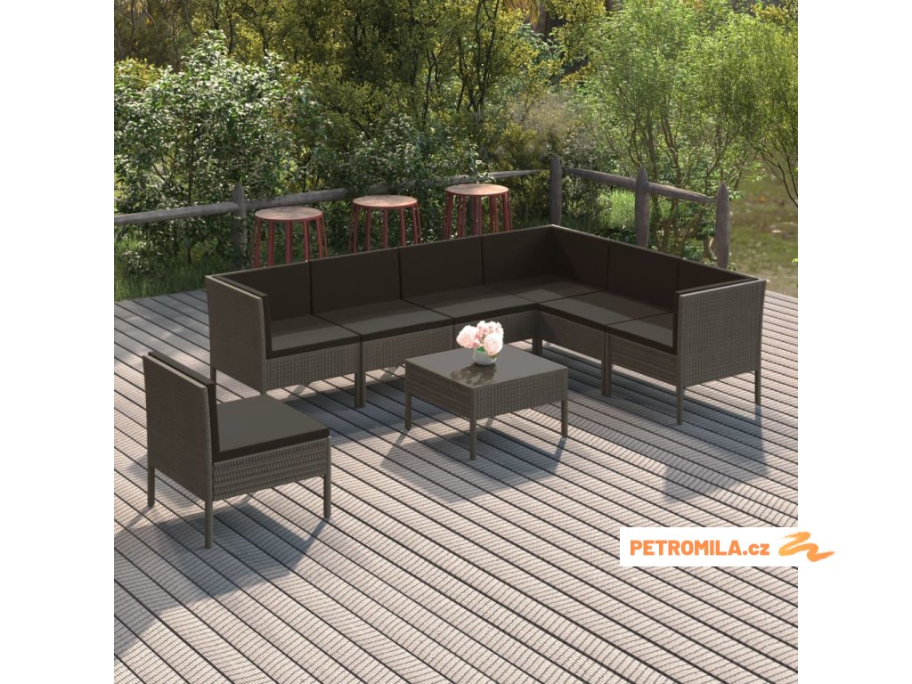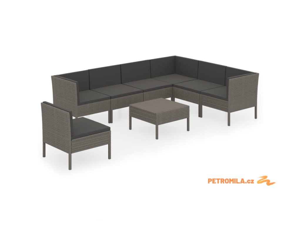 8dílná zahradní sedací souprava s poduškami polyratan šedá