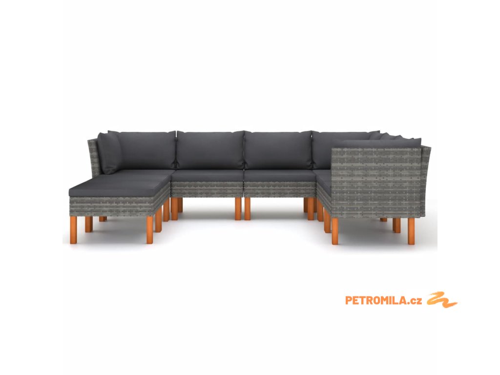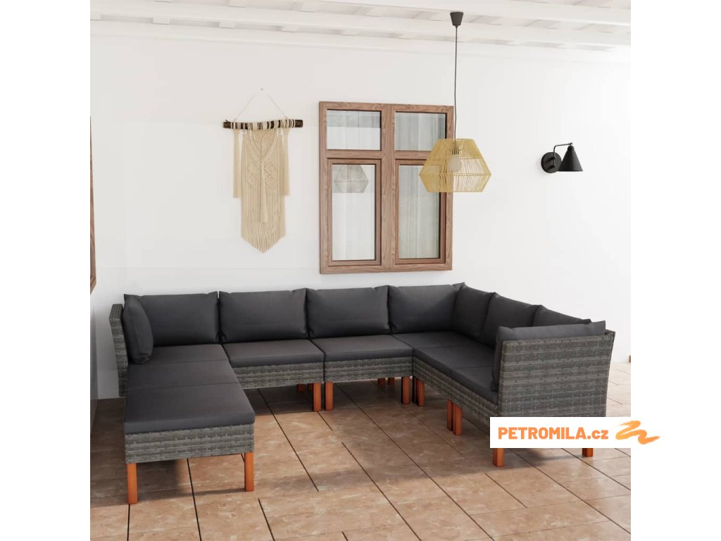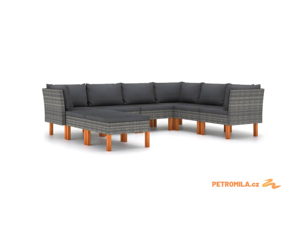 8dílná zahradní sedací souprava s poduškami polyratan šedá