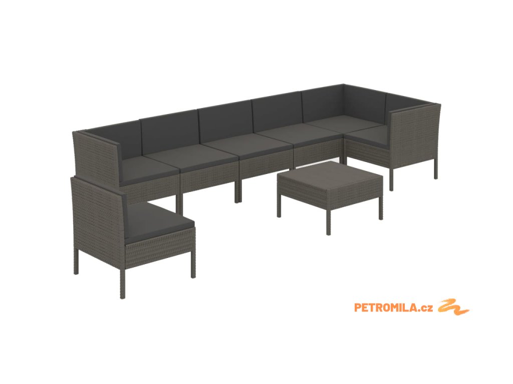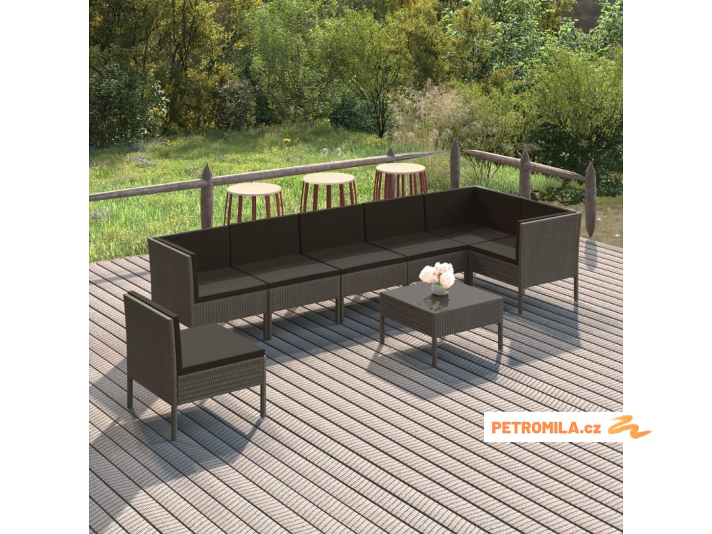 8dílná zahradní sedací souprava s poduškami polyratan šedá
