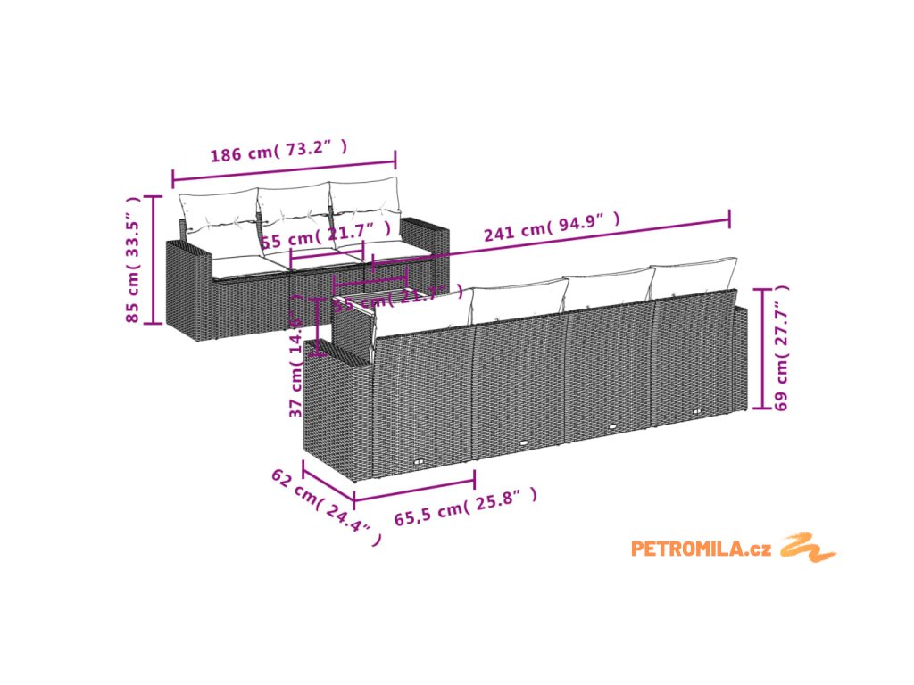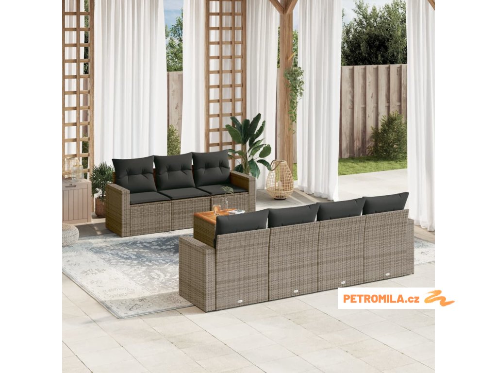 8dílná zahradní sedací souprava s poduškami šedá polyratan