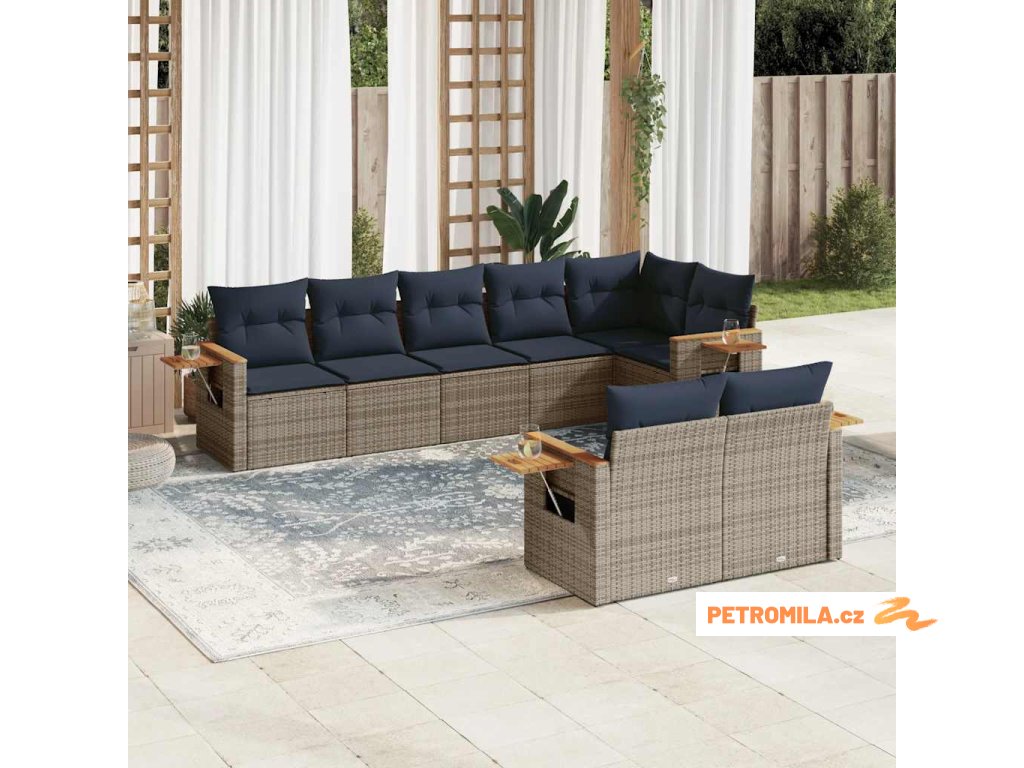 8dílná zahradní sedací souprava s poduškami šedá polyratan
