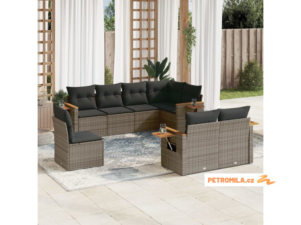 8dílná zahradní sedací souprava s poduškami šedá polyratan
