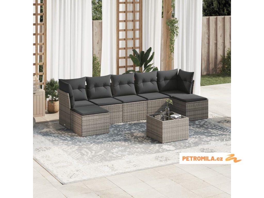 8dílná zahradní sedací souprava s poduškami šedá polyratan