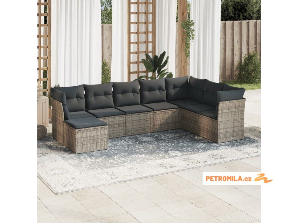8dílná zahradní sedací souprava s poduškami šedá polyratan