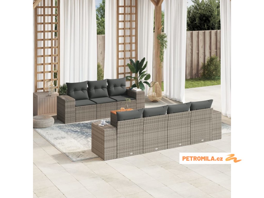 8dílná zahradní sedací souprava s poduškami šedá polyratan