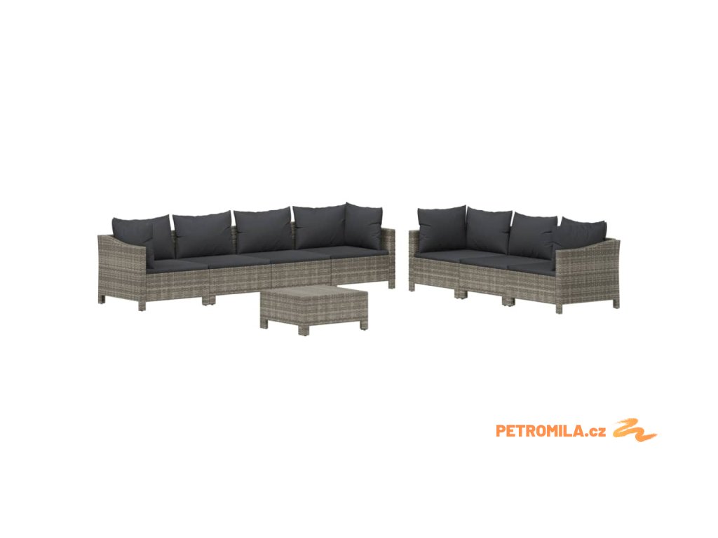 8dílná zahradní sedací souprava s poduškami šedá polyratan