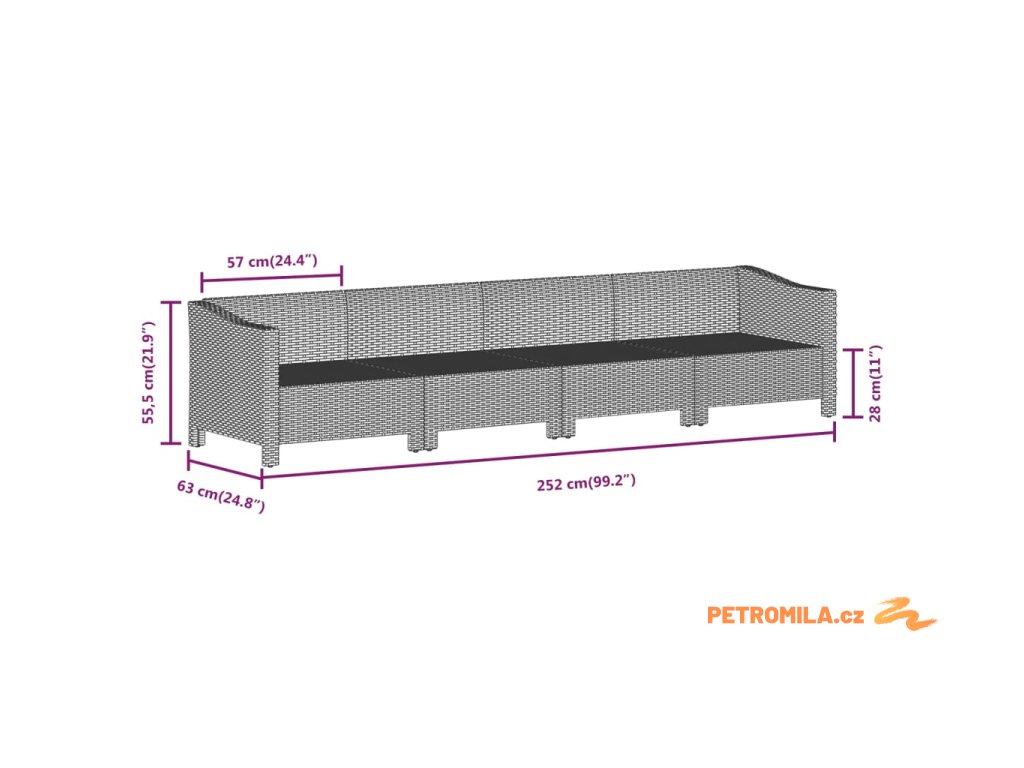 • Rozměry podušky na sedák pohovky: 57/63 x 55 x 3 cm (Š x H x T)