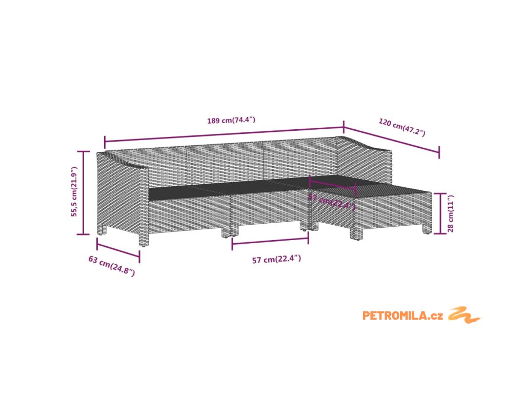 • Rozměry: 57 x 57 x 28 cm (Š x H x V)