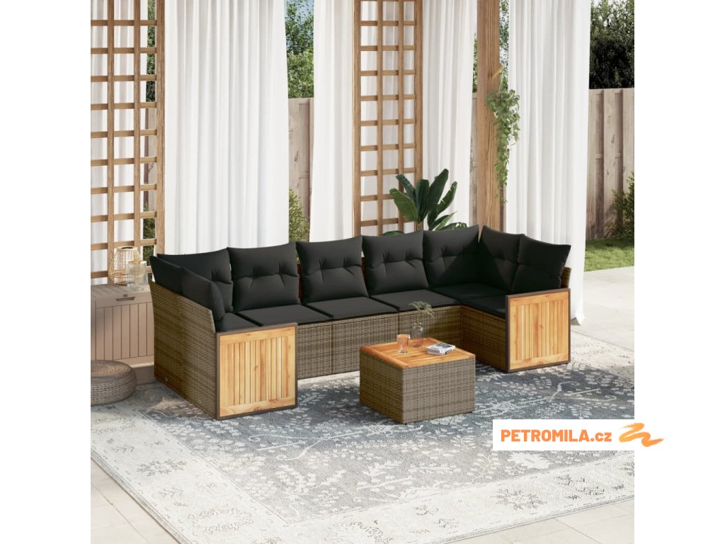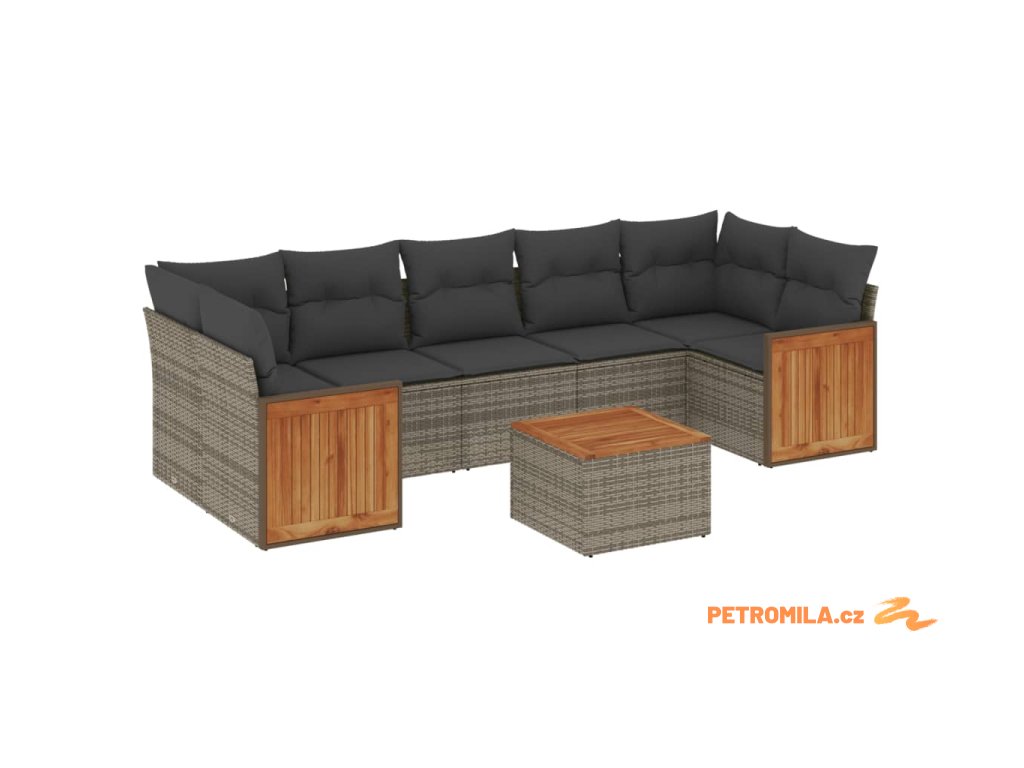 8dílná zahradní sedací souprava s poduškami šedá polyratan