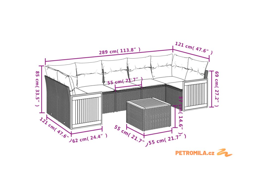 - Rozměry podušky na sedák: 55 x 55 x 3 cm (Š x H x T)