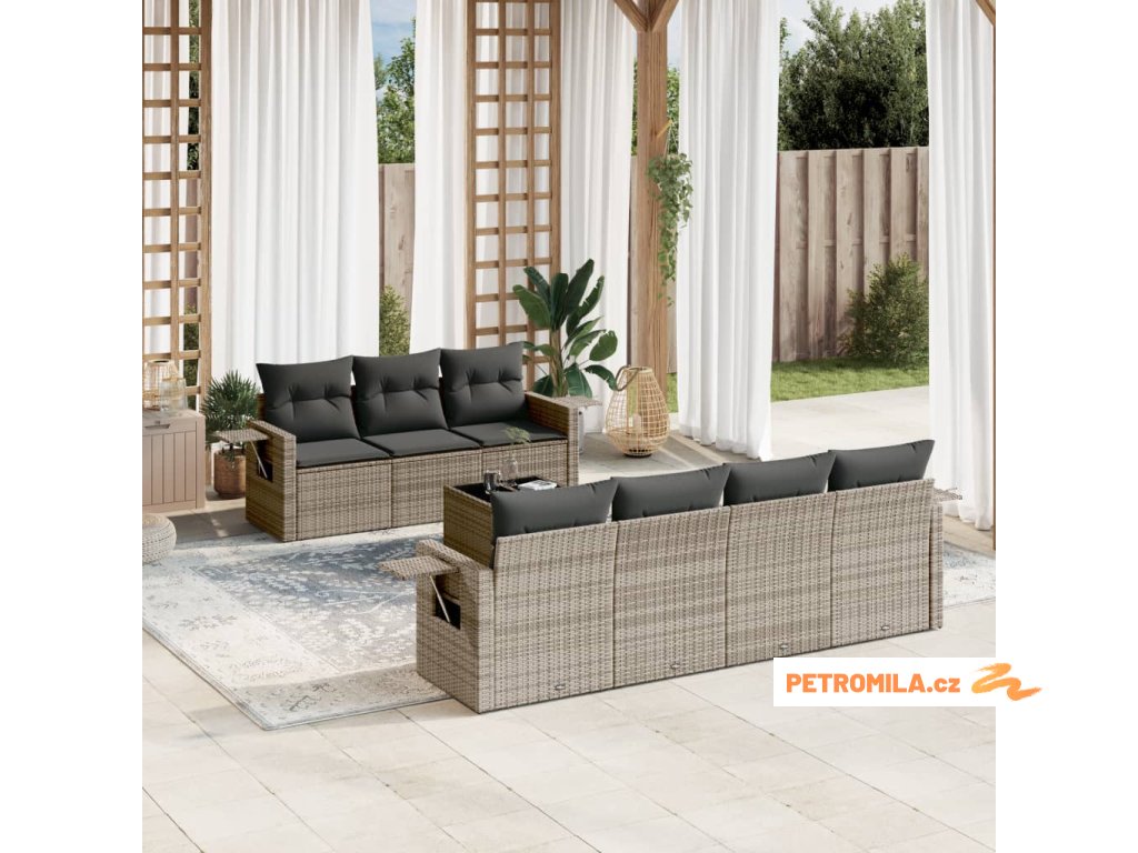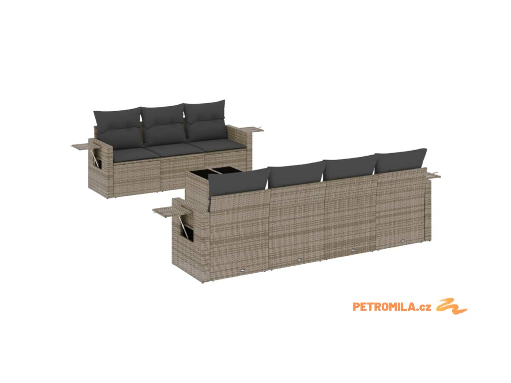 8dílná zahradní sedací souprava s poduškami šedá polyratan