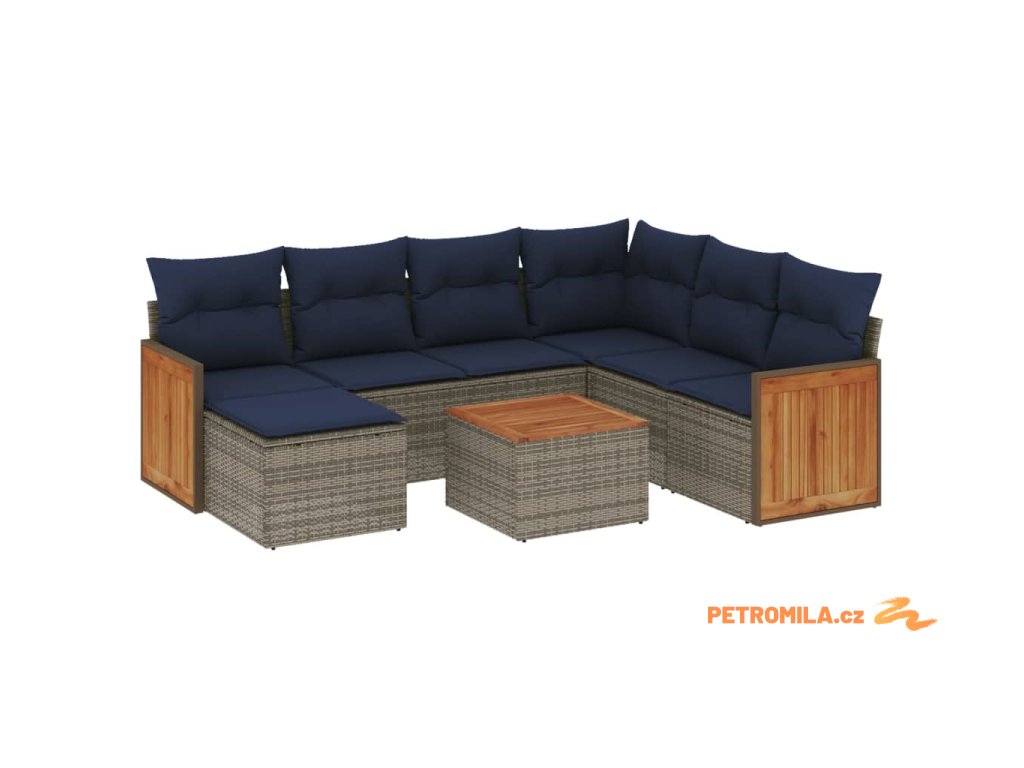 8dílná zahradní sedací souprava s poduškami šedá polyratan