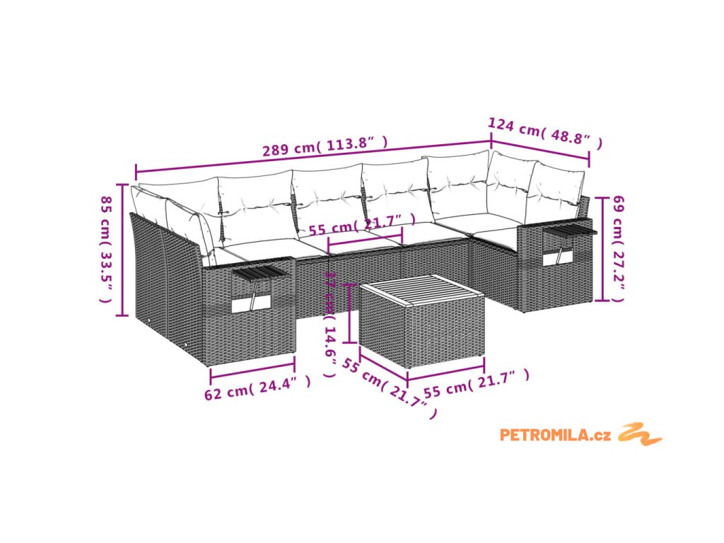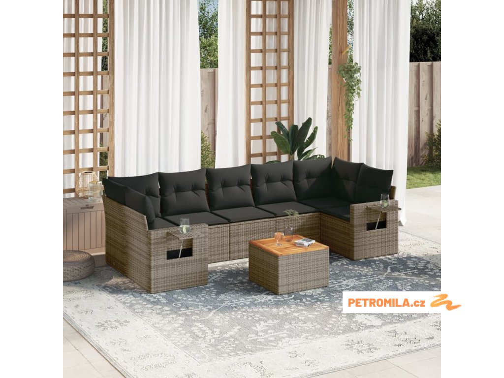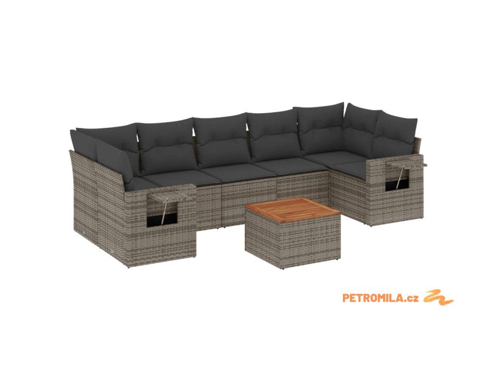 8dílná zahradní sedací souprava s poduškami šedá polyratan
