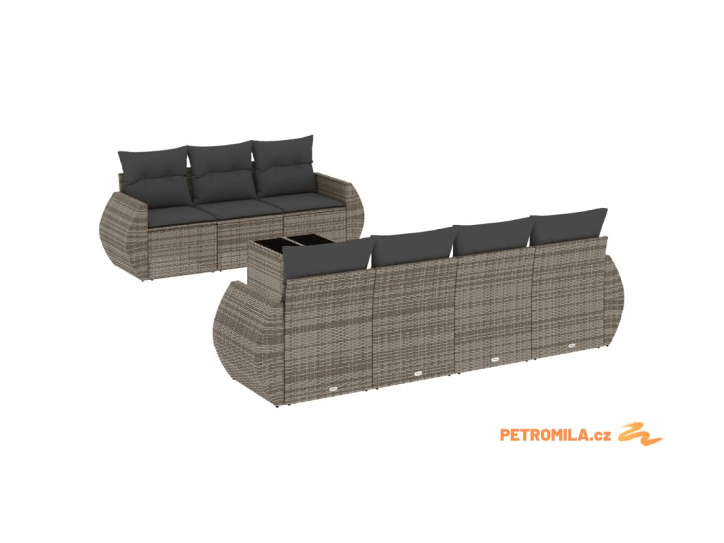 Sada zahradních pohovek s polštářem 8 pcs Šedá Poly ratan