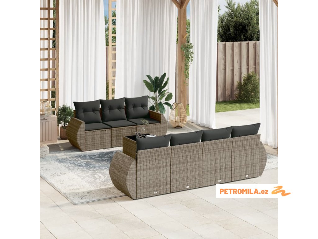 8dílná zahradní sedací souprava s poduškami šedá polyratan