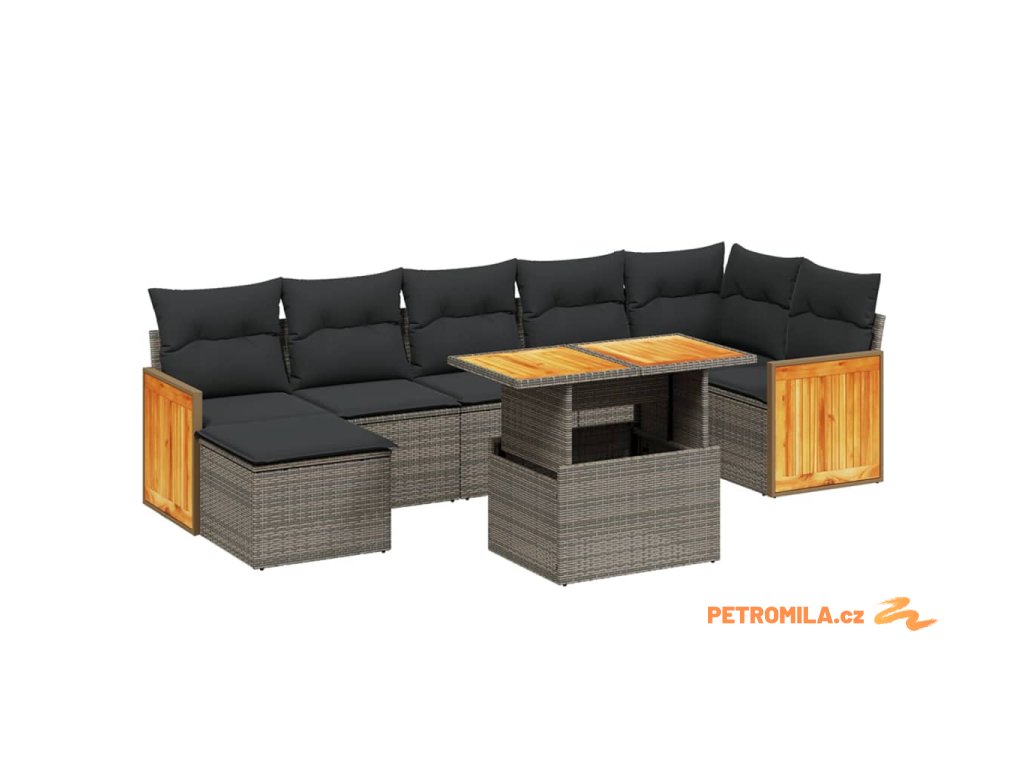8dílná zahradní sedací souprava s poduškami šedá polyratan