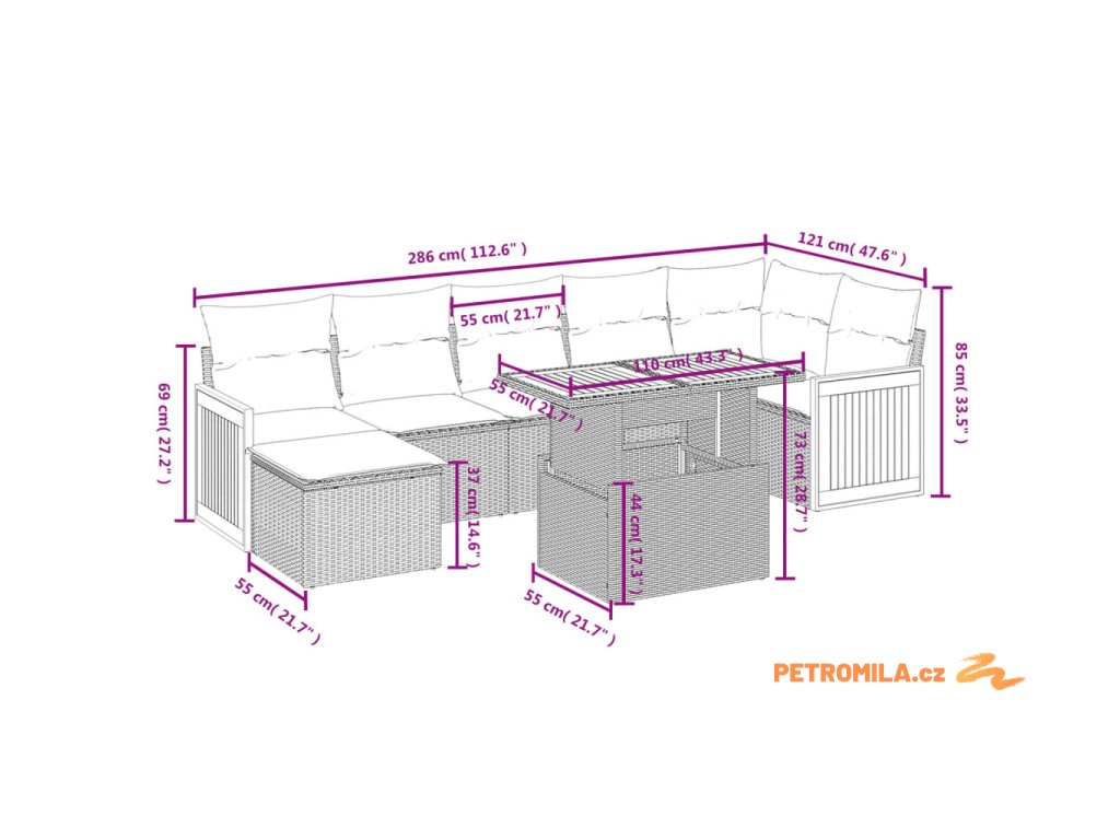 Sada zahradních pohovek s polštářem 7 pcs Hnědá Poly ratan