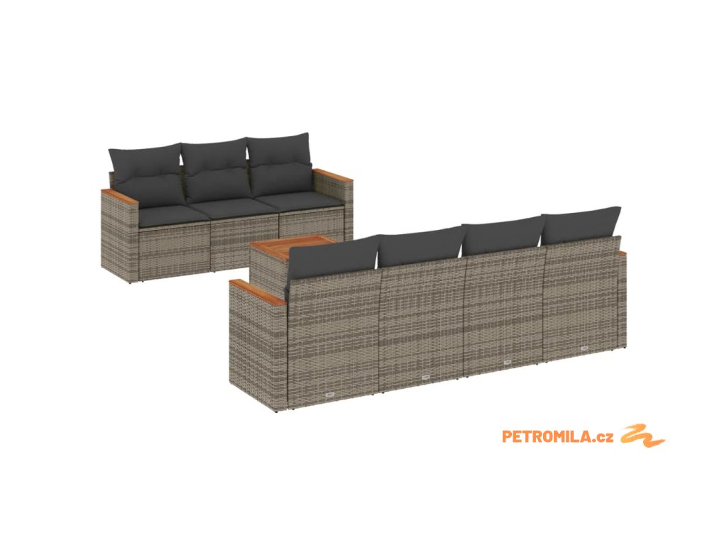 8dílná zahradní sedací souprava s poduškami šedá polyratan