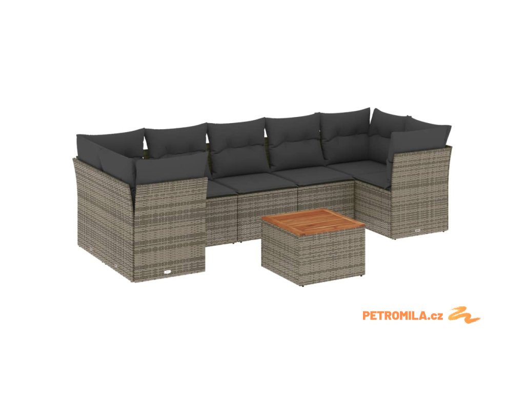 8dílná zahradní sedací souprava s poduškami šedá polyratan