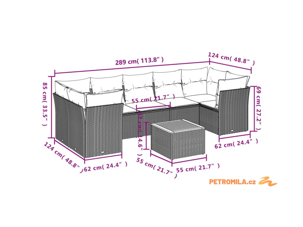 Sada zahradních pohovek s polštářem 8 pcs Šedá Poly ratan