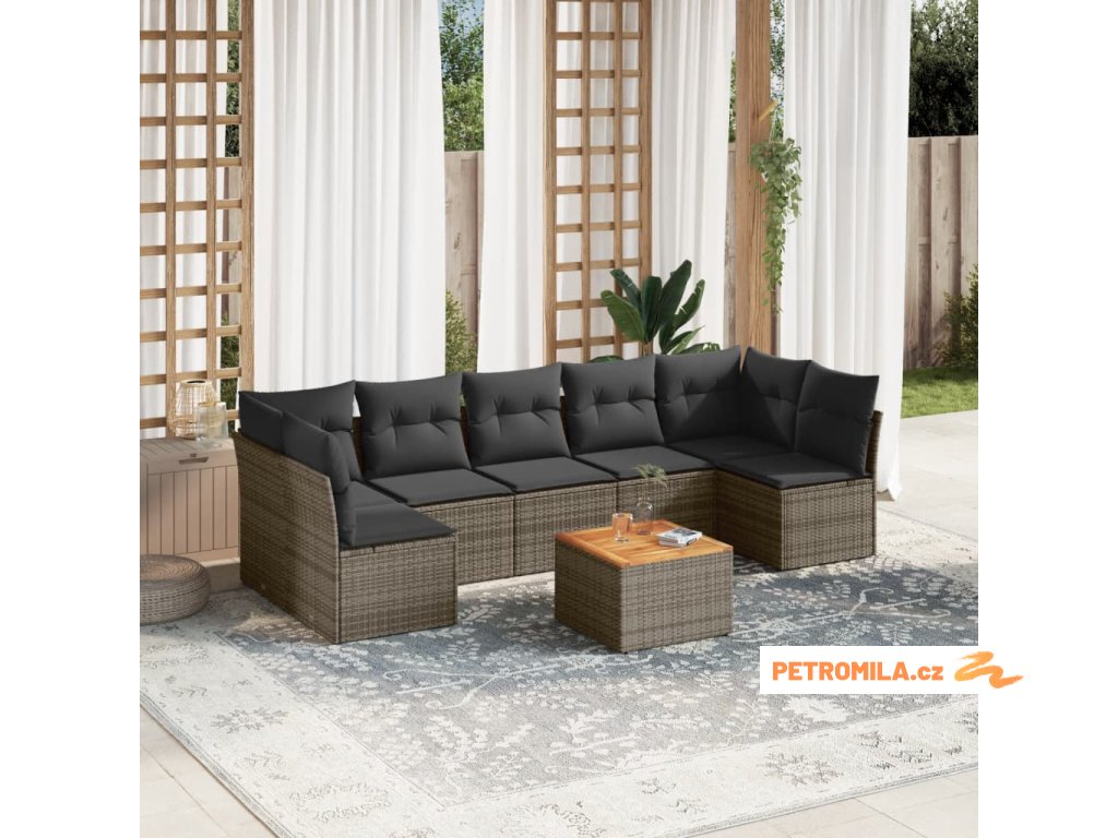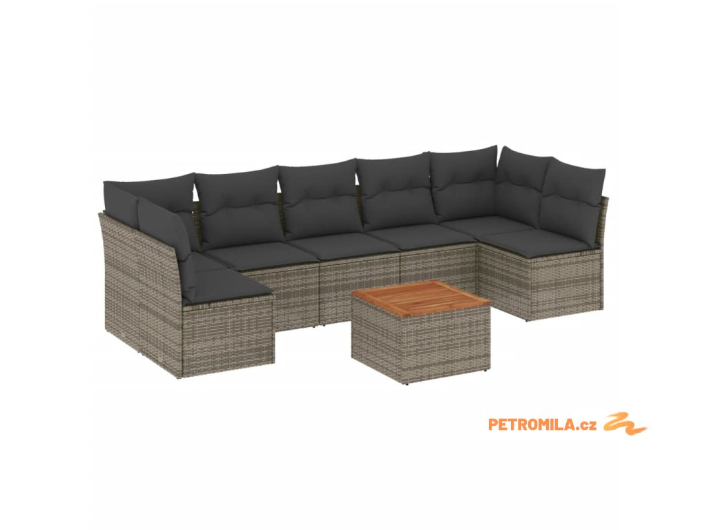 8dílná zahradní sedací souprava s poduškami šedá polyratan