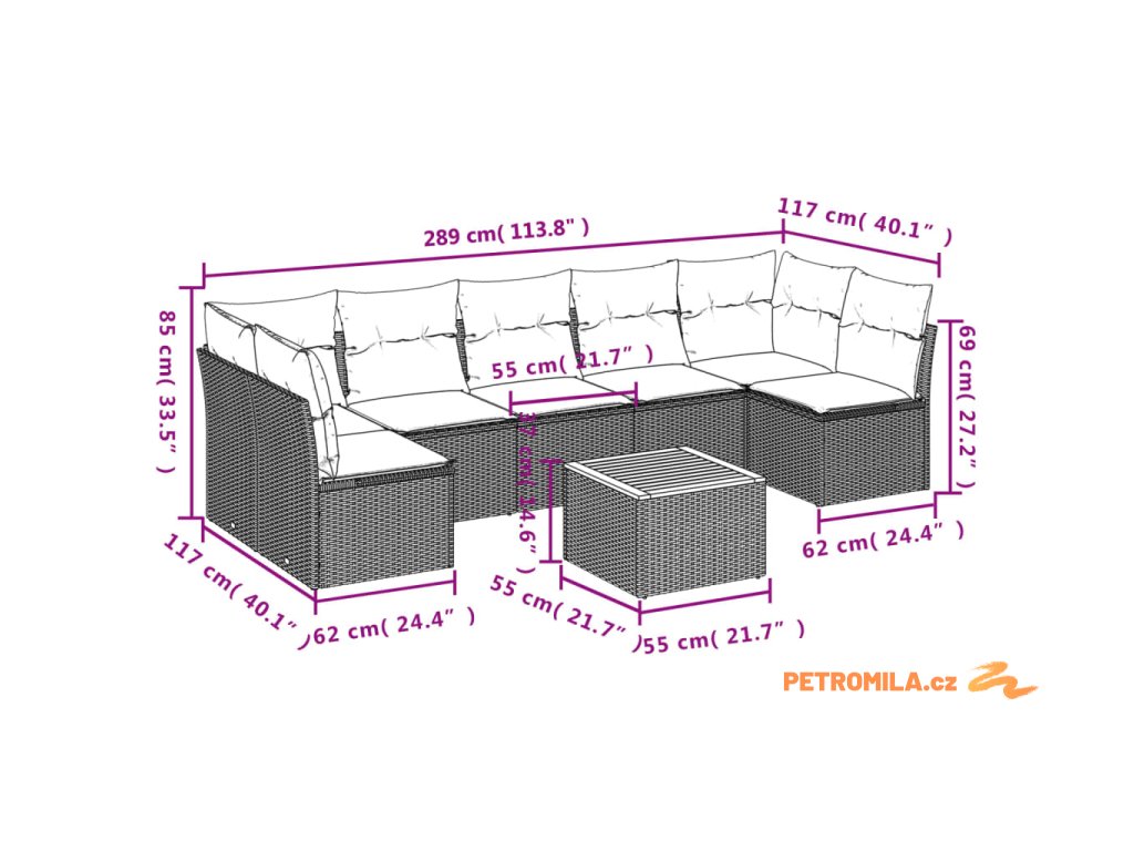 Sada zahradních pohovek s polštářem 8 pcs Béžová Poly ratan