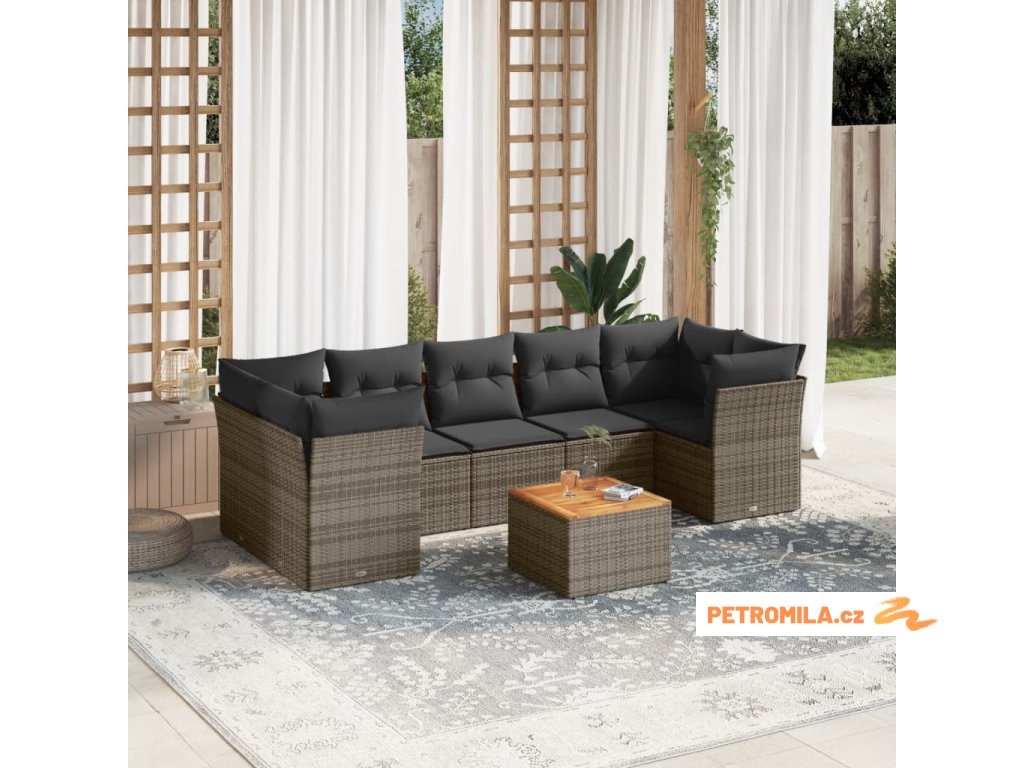 8dílná zahradní sedací souprava s poduškami šedá polyratan