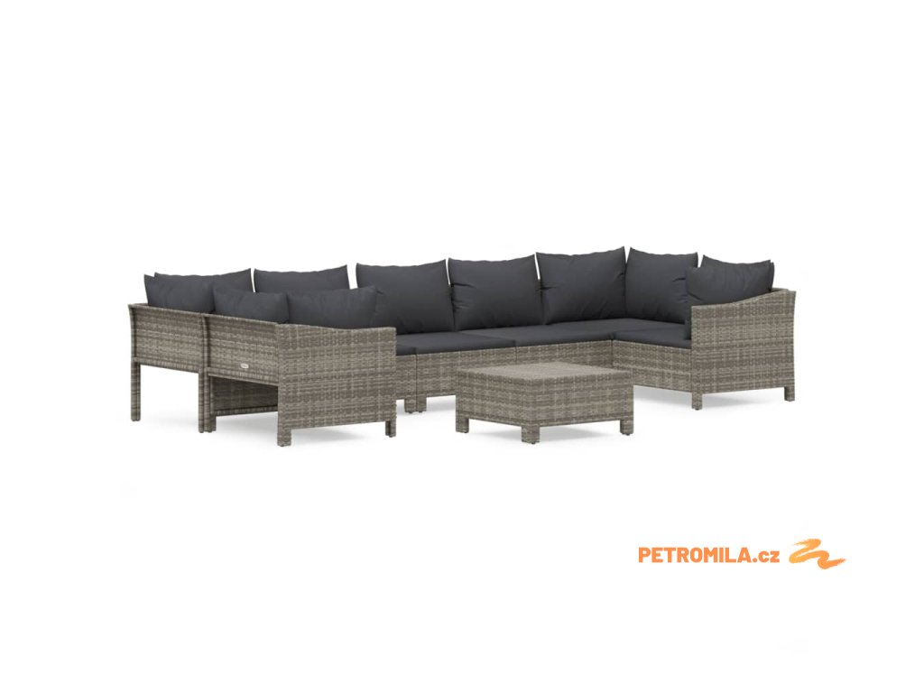 Sada zahradních pohovek s polštářem 8 pcs Šedá Poly ratan