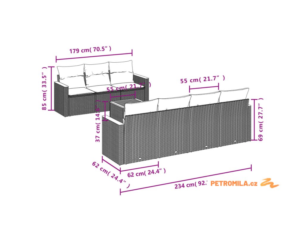 Tato zahradní sedací souprava je dokonalým doplňkem vaší zahrady, terasy nebo dvorku a poskytne vám pohodlné a příjemné místo, kde si můžete povídat s rodinou a přáteli nebo jen tak odpočívat a užívat si pobyt venku.