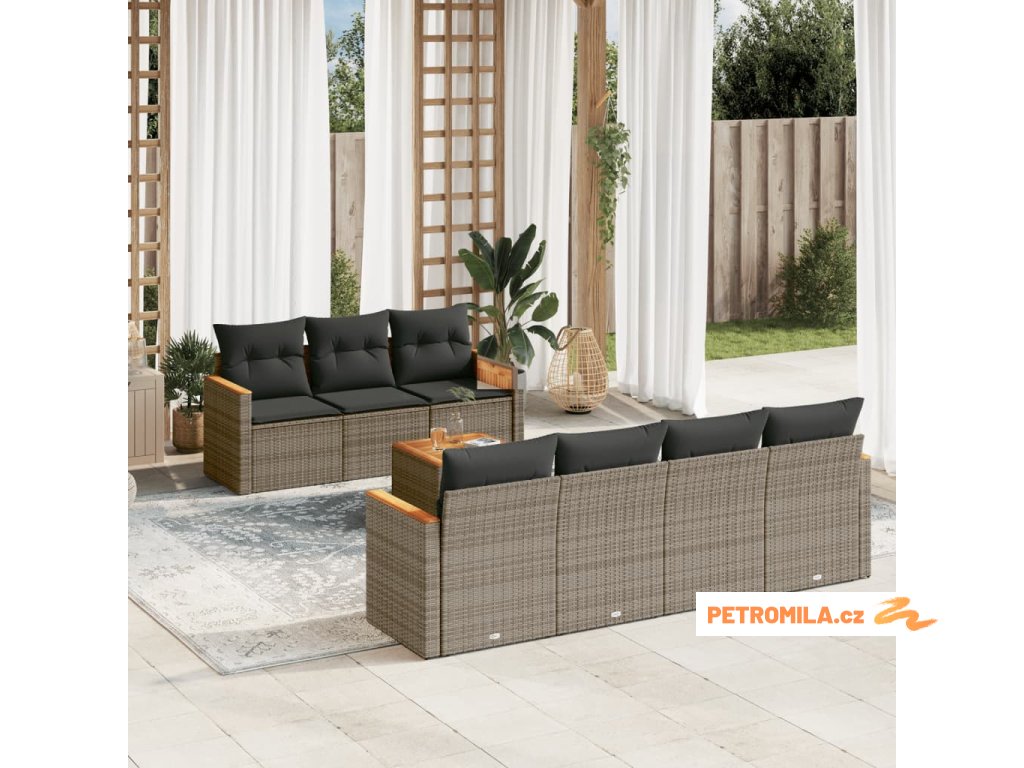 8dílná zahradní sedací souprava s poduškami šedá polyratan
