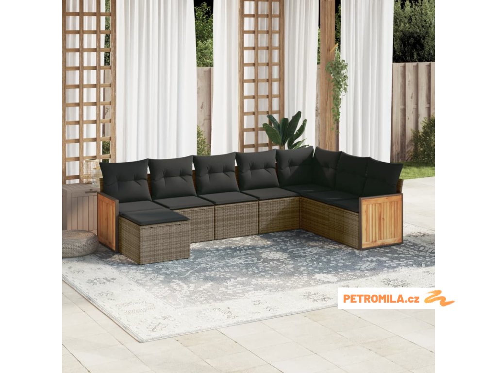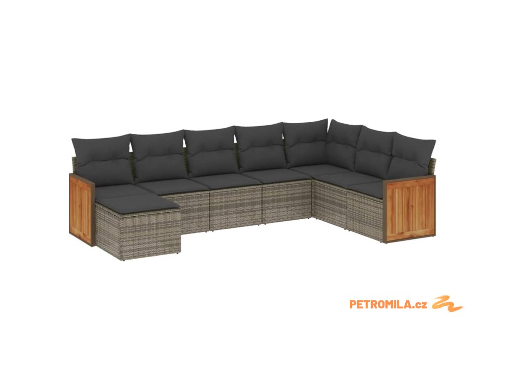 8dílná zahradní sedací souprava s poduškami šedá polyratan