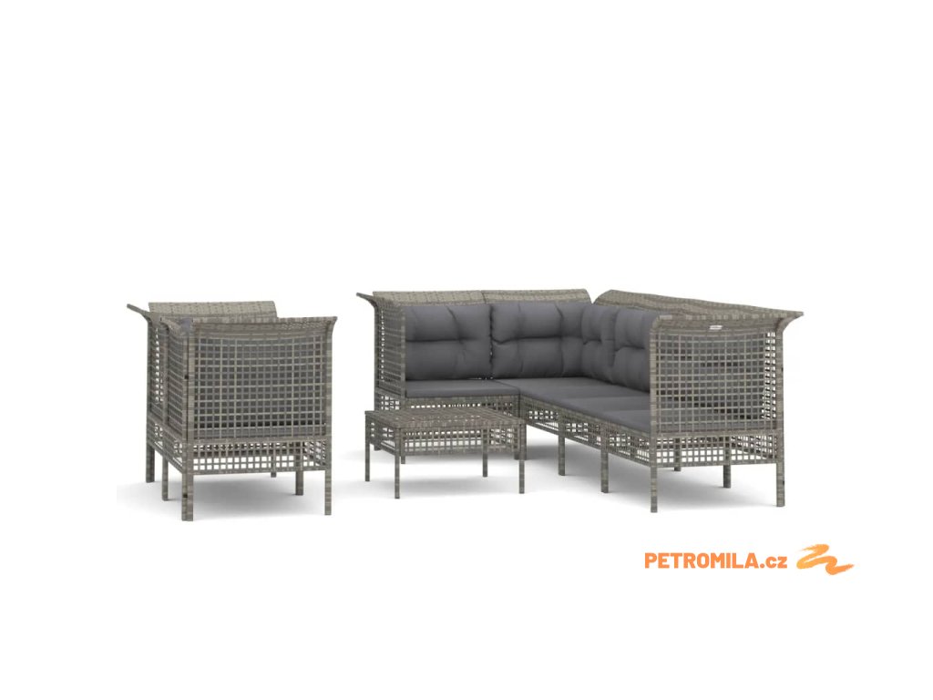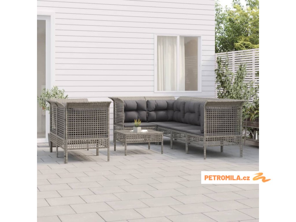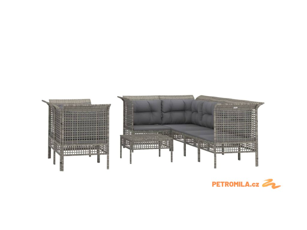 8dílná zahradní sedací souprava s poduškami šedá polyratan