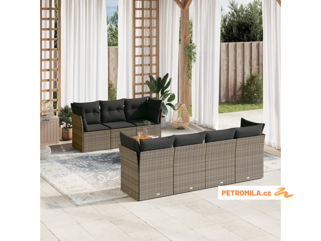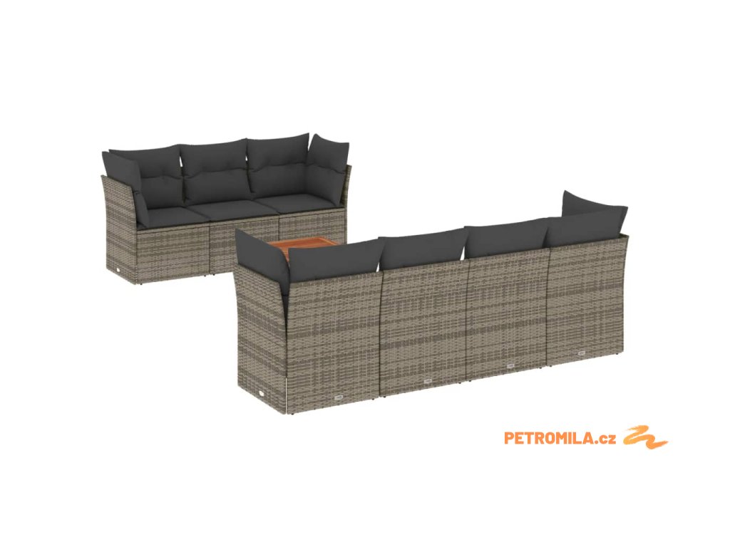 8dílná zahradní sedací souprava s poduškami šedá polyratan