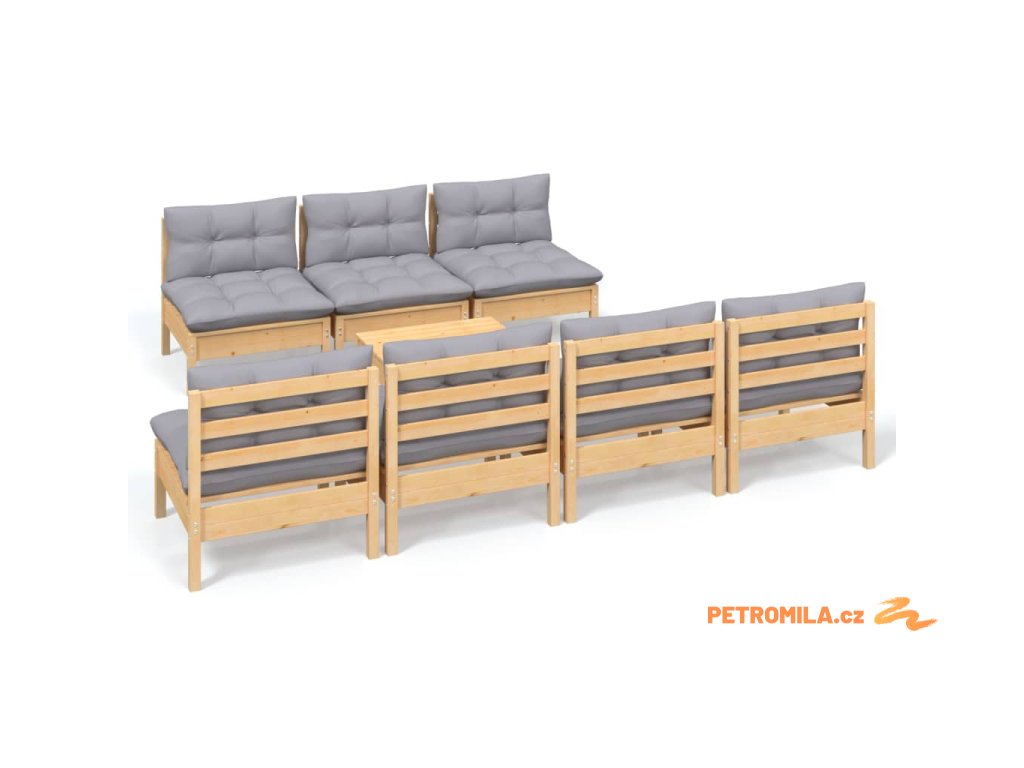 8dílná zahradní sedací souprava s šedými poduškami borovice