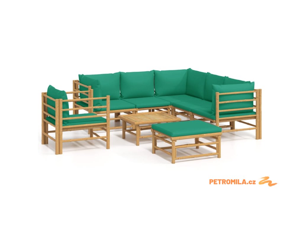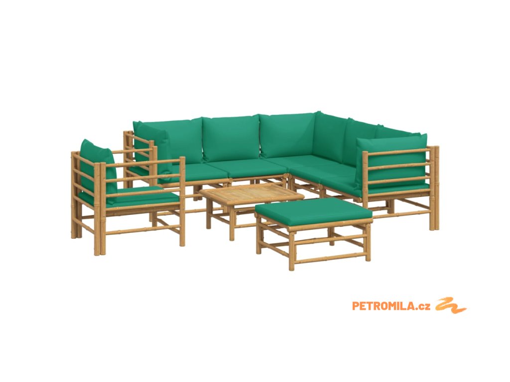 8dílná zahradní sedací souprava se zelenými poduškami bambus
