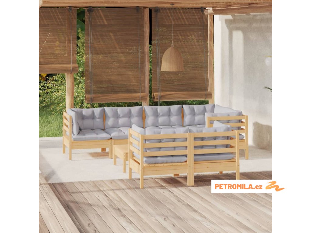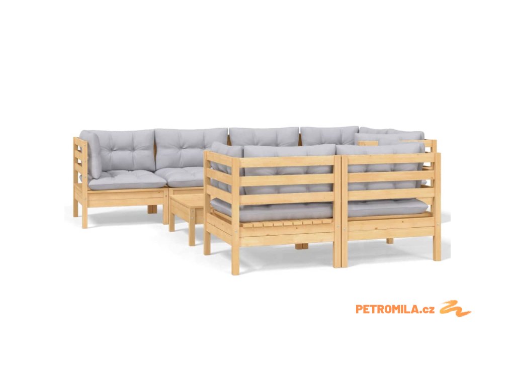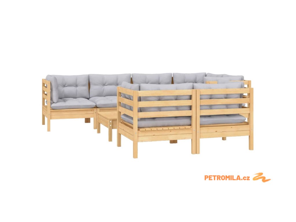 8dílná zahradní sedací souprava šedé podušky masivní borovice