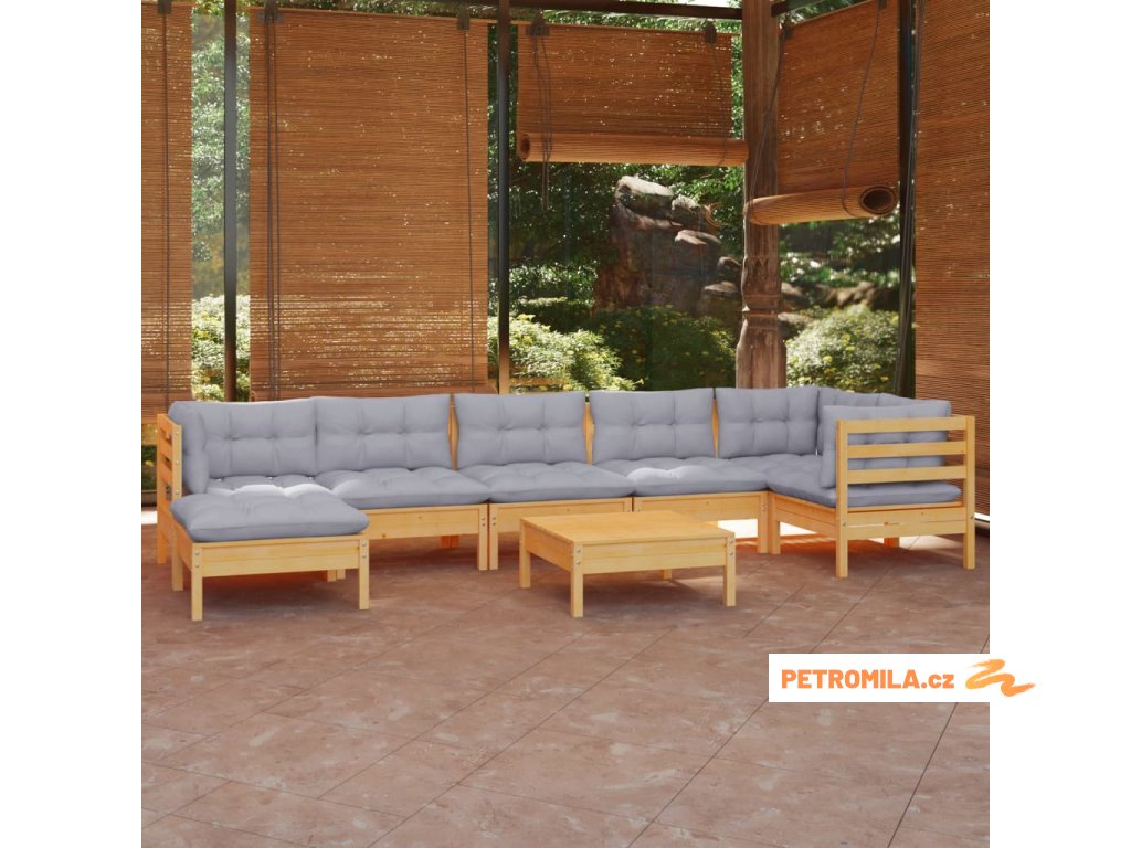 8dílná zahradní sedací souprava šedé podušky masivní borovice