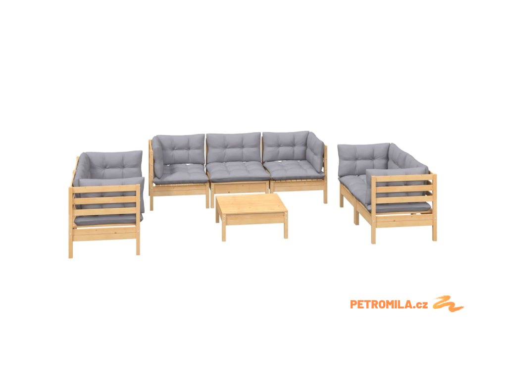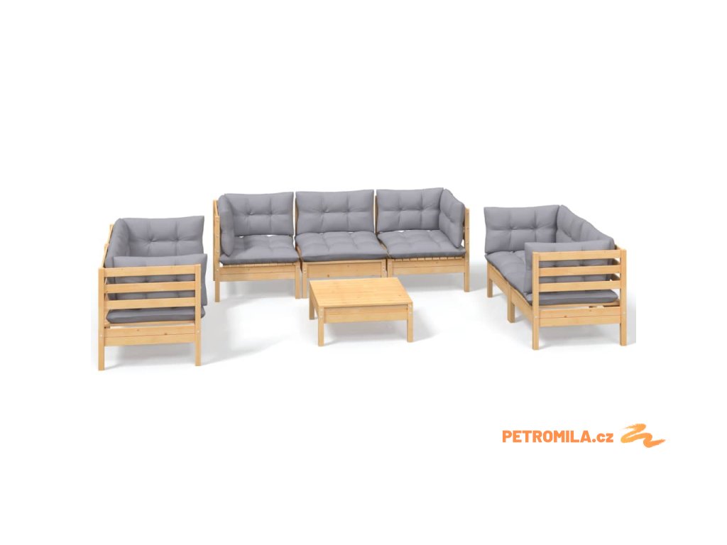 8dílná zahradní sedací souprava šedé podušky masivní borovice