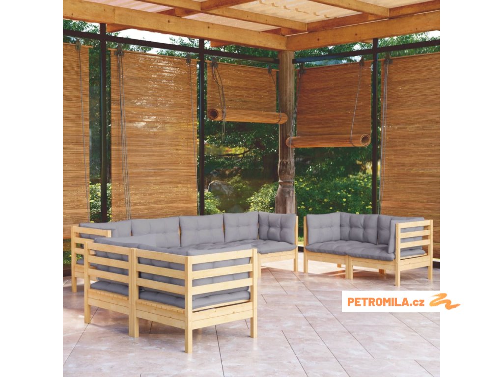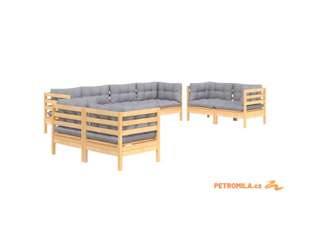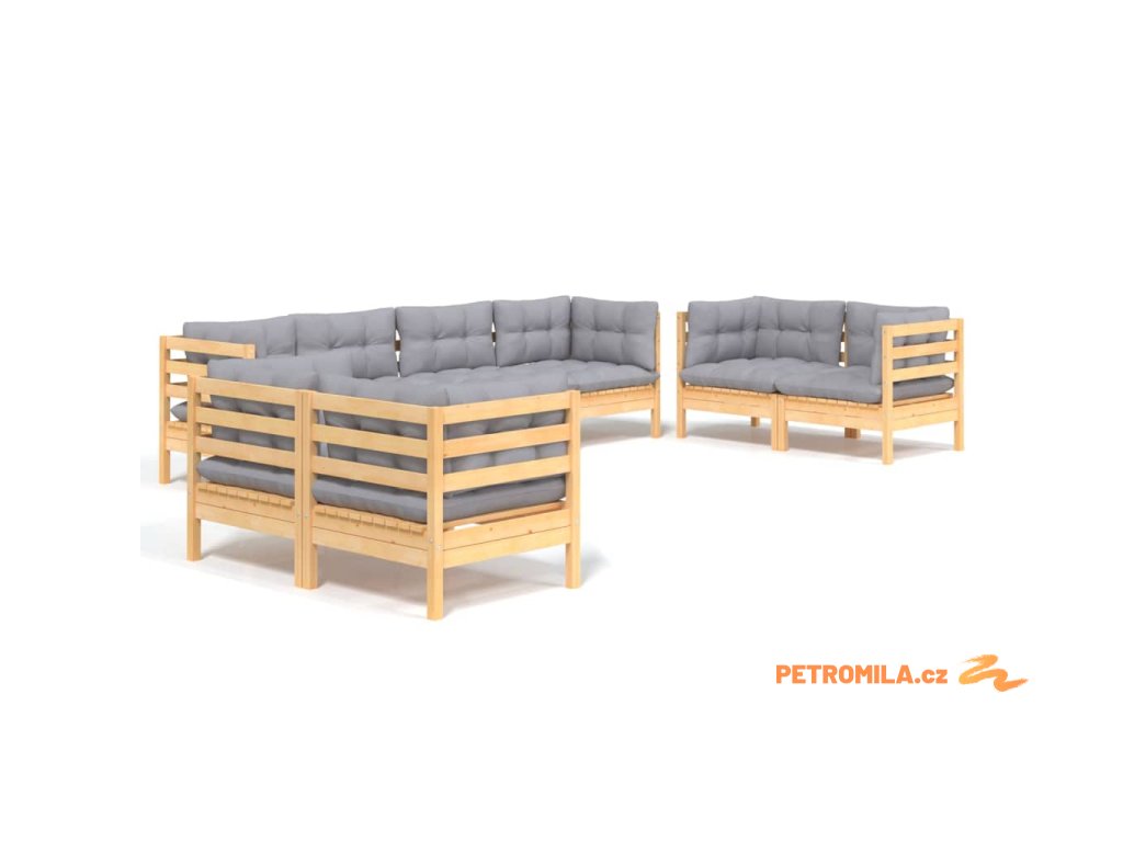 8dílná zahradní sedací souprava šedé podušky masivní borovice