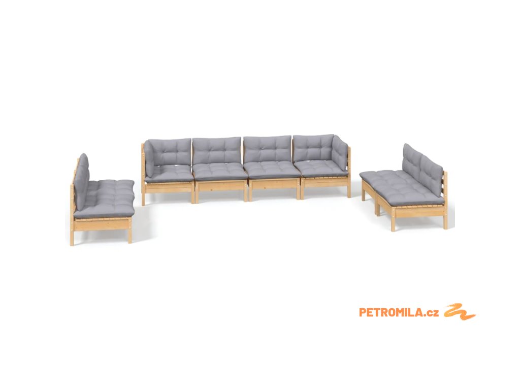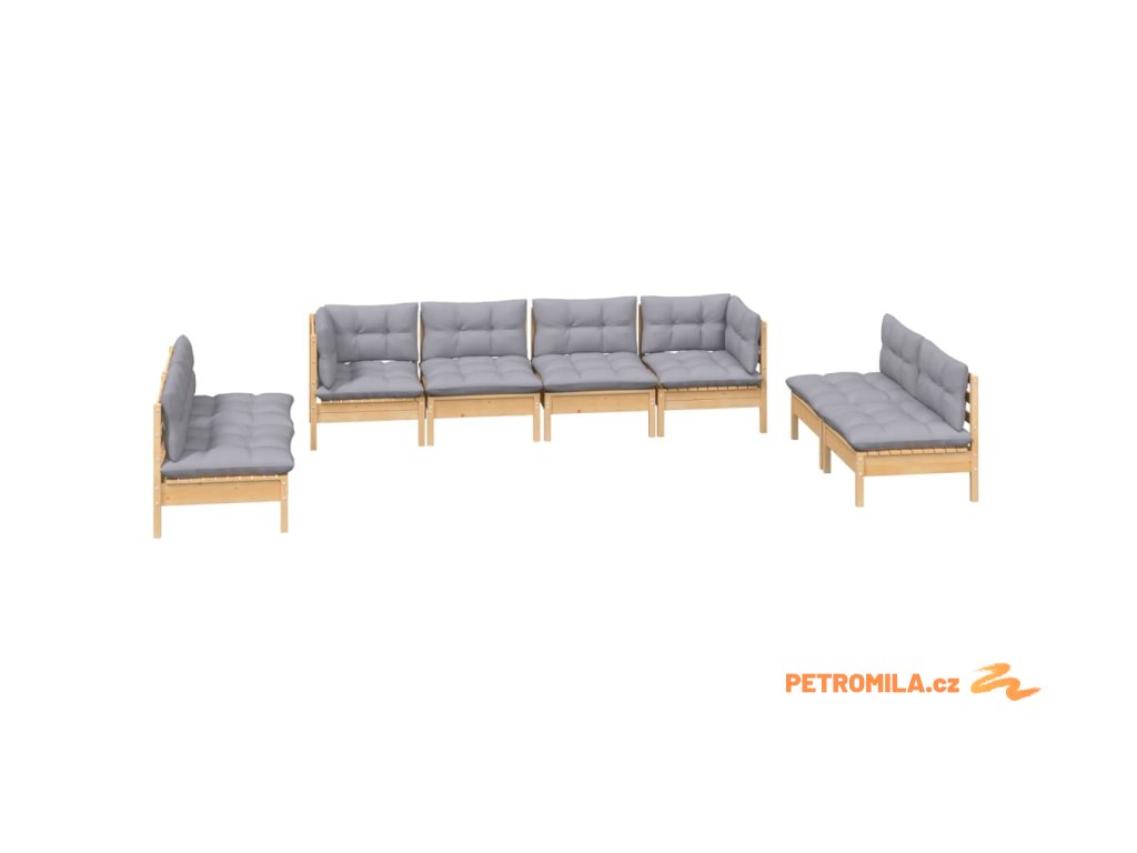 8dílná zahradní sedací souprava šedé podušky masivní borovice