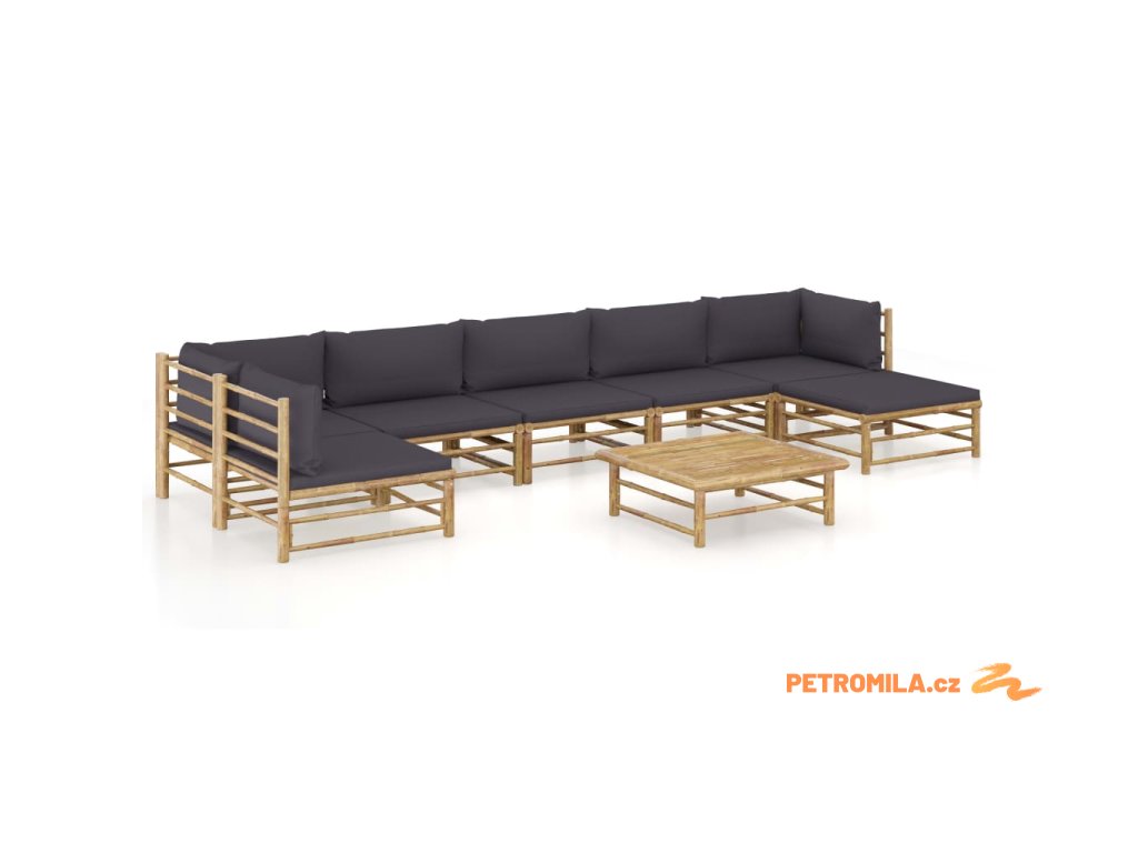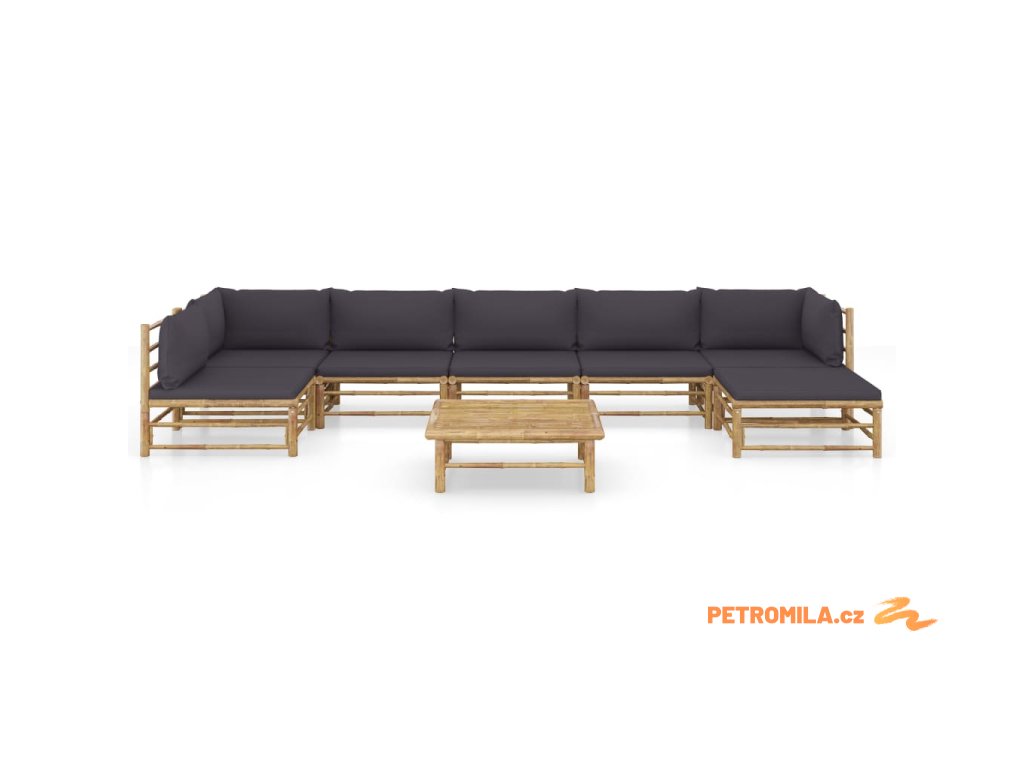 8dílná zahradní sedací souprava + tmavě šedé podušky bambus