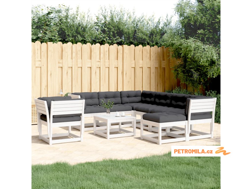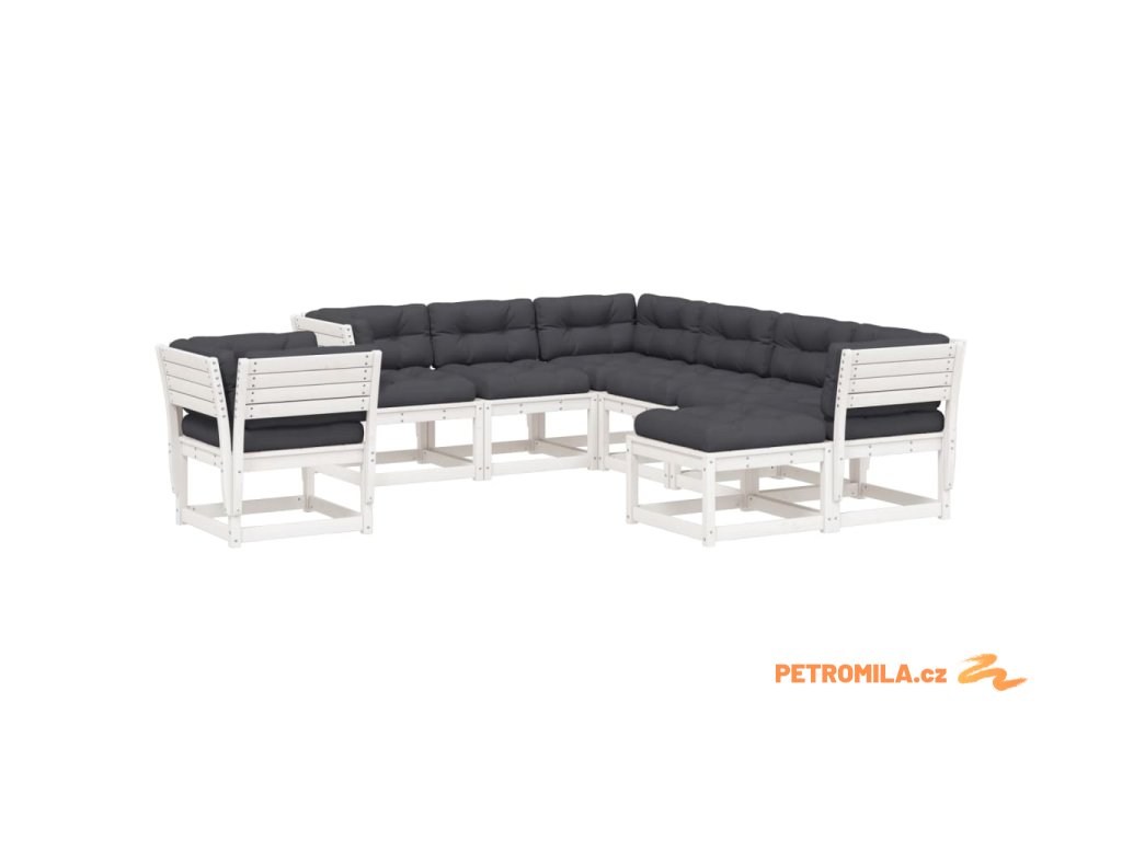 8dílná zahradní souprava s poduškami bílá masivní borovice
